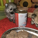 Acceptance is good, the mash is not only gobbled up quickly, but is of course also spread all over the puppies' faces.